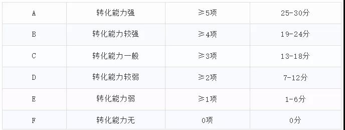 企業(yè)的科技成果轉(zhuǎn)化能力分?jǐn)?shù)是由技術(shù)專家根據(jù)企業(yè)科技成果轉(zhuǎn)化總體情況和近3年內(nèi)科技成果轉(zhuǎn)化的年平均數(shù)進(jìn)行綜合評(píng)價(jià)。